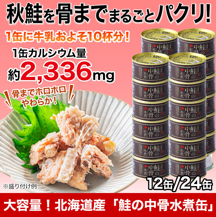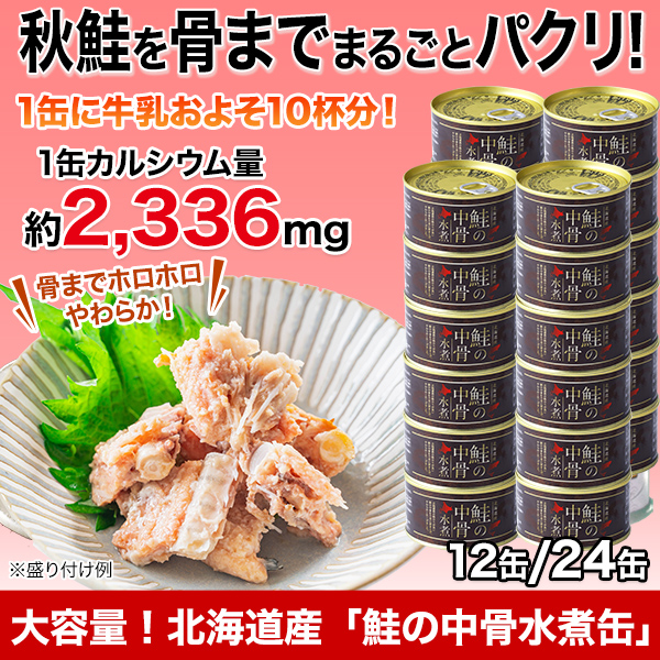 大容量!北海道産「鮭の中骨水煮缶」 12缶/24缶