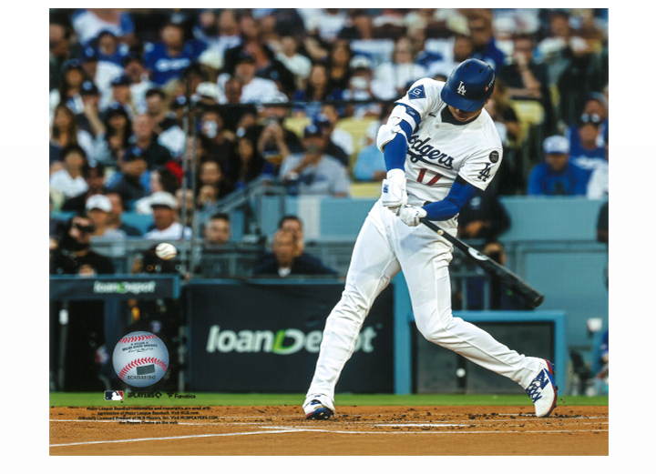 一回表で3者連続三振を奪った後、その裏で先頭打者ホームランを放った瞬間を写真に。MLB史上で初めての「投手で先頭打者ホームランを放った選手」になる。まさに歴史的な一枚。