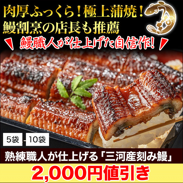 | 商品説明 | 三河の"鰻御三家"と称される「みかわ三水亭」の店長も薦める絶品うなぎ!良質な活鰻を職人が一尾ずつ捌き、その日のうちに蒲焼にしています。ふっくら二度蒸しした後、タレ漬けと焼きを四回繰り返し、余分な脂を落としながら旨みをぎゅっと閉じ込めました。 |