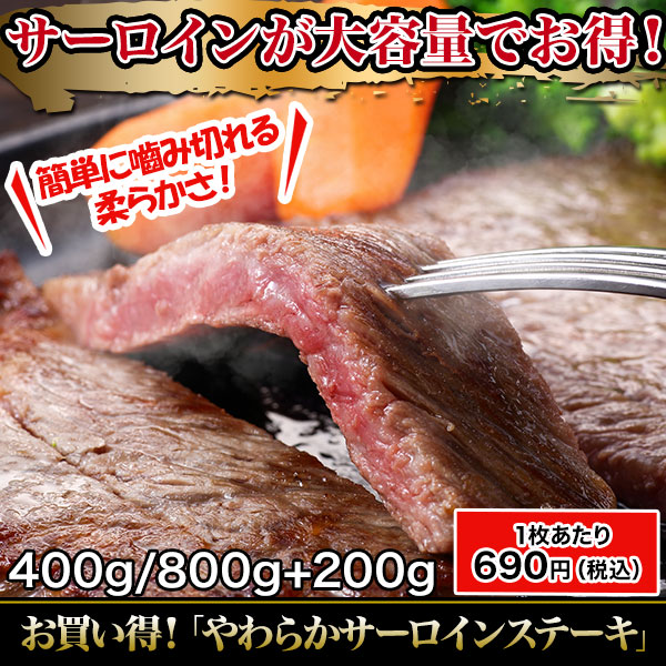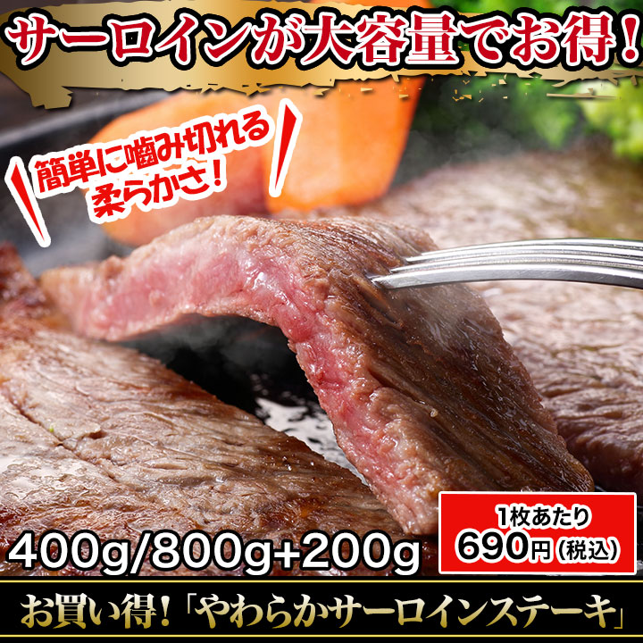 お買い得!「やわらかサーロインステーキ」400g/800g+200g