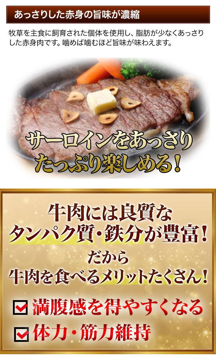 商品説明 赤身と脂のバランスがよいステーキの王様「サーロイン」を使用!