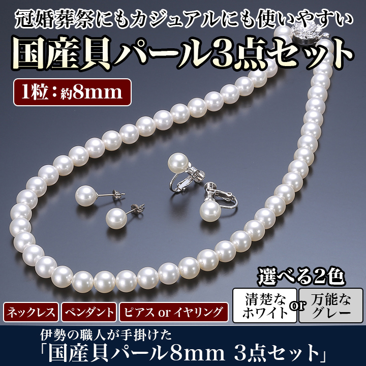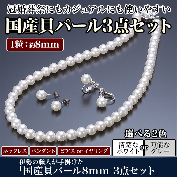 伊勢の職人が手掛けた「国産貝パール8mm 3点セット」