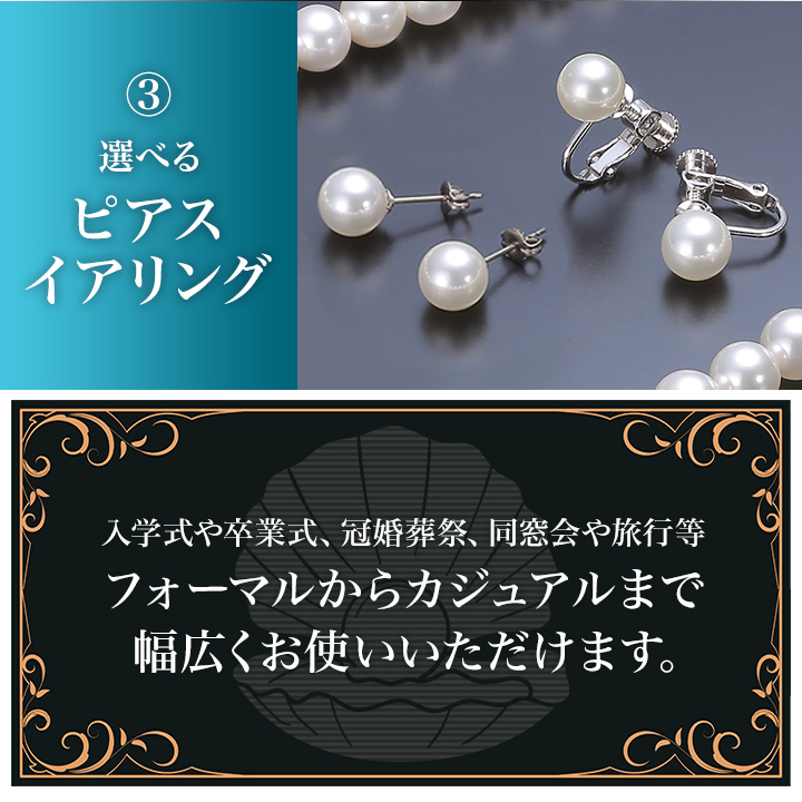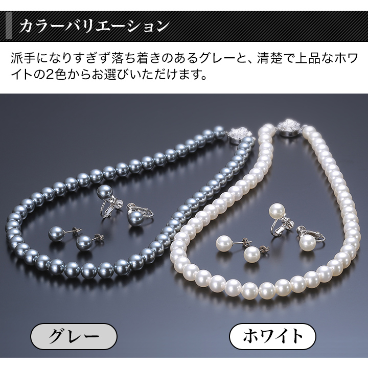| 商品説明 | 老舗真珠メーカーの職人が作った国産貝パール3点セット! 一粒8mmのサイズで存在感があり、品のある輝きを放ちます。 貝パールとは本真珠に最も近いイミテーションパール(模造品)で本真珠に似た見た目ながらも手ごろな価格で手に入れられ、特にカジュアルな場面で人気です。 入学式や卒業式、冠婚葬祭等にもお使いいただけます。 全長42cmのネックレスと40cmの一粒ペンダントに選べるピアスかイヤリングの3点をお届けします。 |