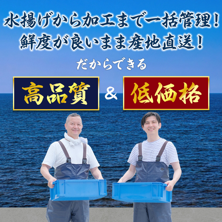 水揚げ~加工まで一括管理しているから鮮度も抜群です。