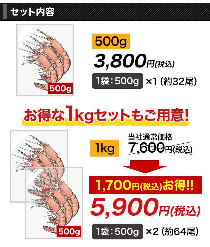 セット内容 【500g】500g×1袋(32尾前後)