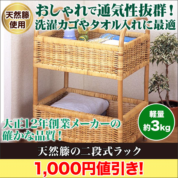 【新聞売れ筋値引き】天然籐の二段式ラック
