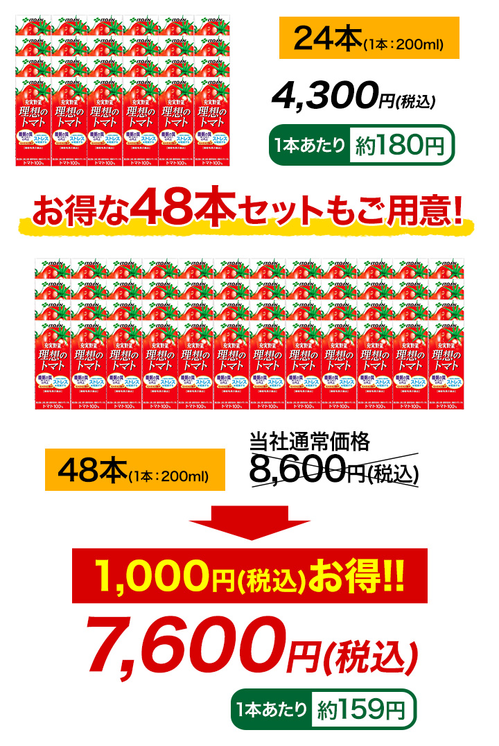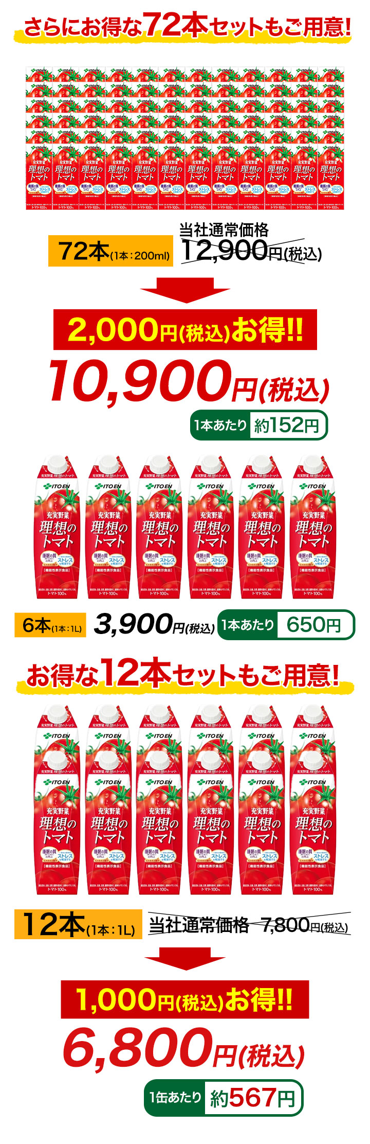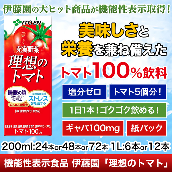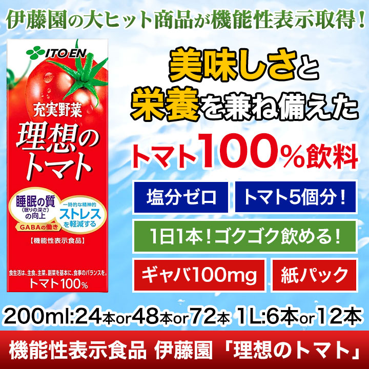 機能性表示食品「理想のトマト」200ml 24本/48本/72本 1L 6本/12本