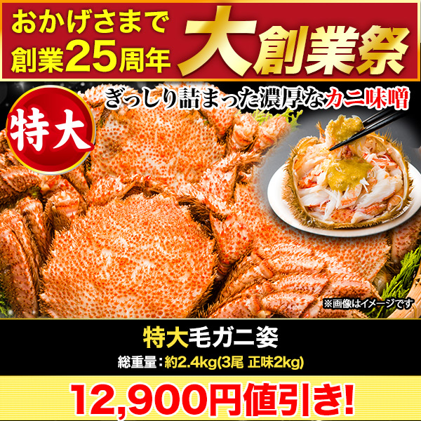 【大創業祭】特大毛ガニ姿 総重量:約2.4kg(3尾正味2kg)