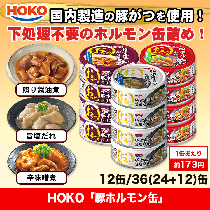 HOKO「豚ホルモン缶」 12缶/36(24+12)缶