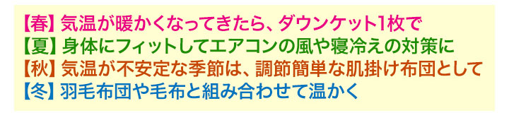 温かい季節は1枚で、寒い季節は布団を重ねて使用できます。