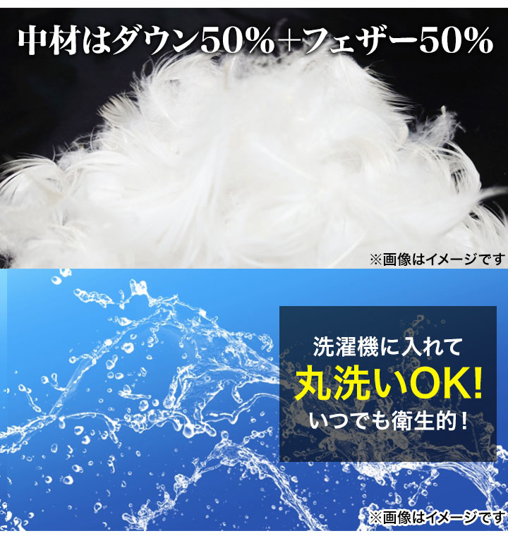 中材は保温率の高いダウンと通気性の良いフェザーのコンビネーション。程よい保温性と蒸れにくいところの両方を併せ持っているので暖かな季節にも快適です。