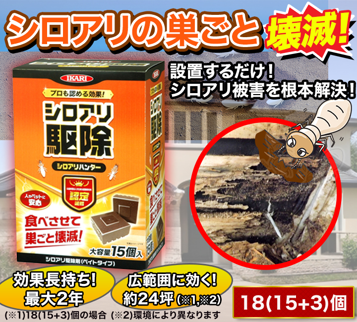 食べさせて巣ごと壊滅「シロアリ駆除剤」 18(15+3)個