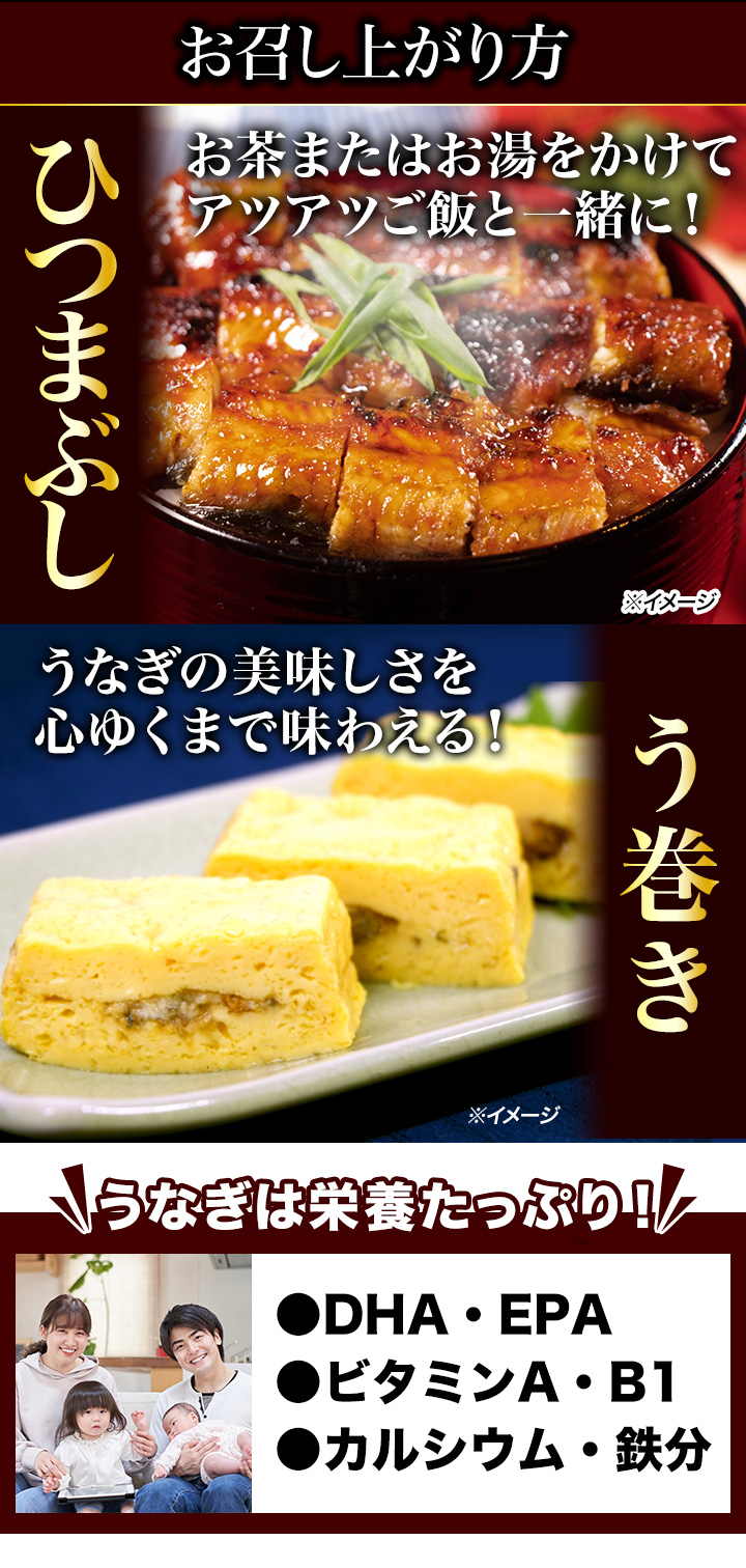 | 召し上がり方 | 【うなぎの解凍方法】 冷蔵庫内にて約5時間ほど自然解凍、または湯煎にて解凍いただき、下記の方法にて加熱してください。 ※湯煎の場合、加熱が問題なければそのままお召し上がりくださいませ。 【電子レンジでの加熱】 真空袋のうなぎを取り出し食べやすい大きさにカット、またはカットせずにそのままお皿に乗せ、500Wで1分ほど徐々に加熱してください。 【オーブントースターでの加熱】 同じく、真空袋からうなぎを取り出し食べやすい大きさにカット、焦げないように徐々に加熱してください。 【フライパンでの加熱の場合】 うなぎを食べやすい大きさにカットしていただき、アルミホイルをフライパンに敷き、うなぎを乗せ、蒸し焼きのようにじっくり加熱するとふっくらと仕上がります。 ※皮面をパリッと仕上げたい場合は、最初にごく少量の油を引き皮面を焼き上げてください。 |