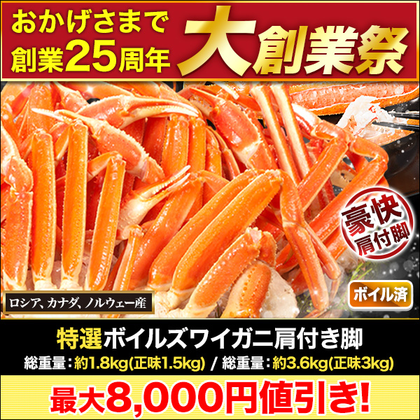 | 商品説明 | 身がぎっしり!甘さは格別!ズワイガニの肩付脚をどっさり! ズワイガニをボイルしてそのまま急速冷凍! 獲れたての新鮮な旨みをギュ-ッと!閉じ込めてお届け致します。 身ばなれが良いのは、鮮度がいい証拠!繊維質に富んだ甘い身も絶品です。 甲羅なしの美味しい肩付き脚部分だけのセットで大変お買得! |