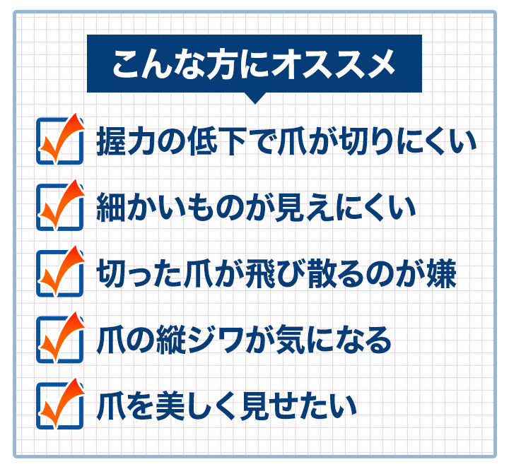 | 仕様 | ・「チャイルドロック」形式 ※ご使用の際は「爪切スイッチ」と「爪磨きスイッチ」を同時に長押ししてください。 ・自動ストップ、自動電源OFF機能 |